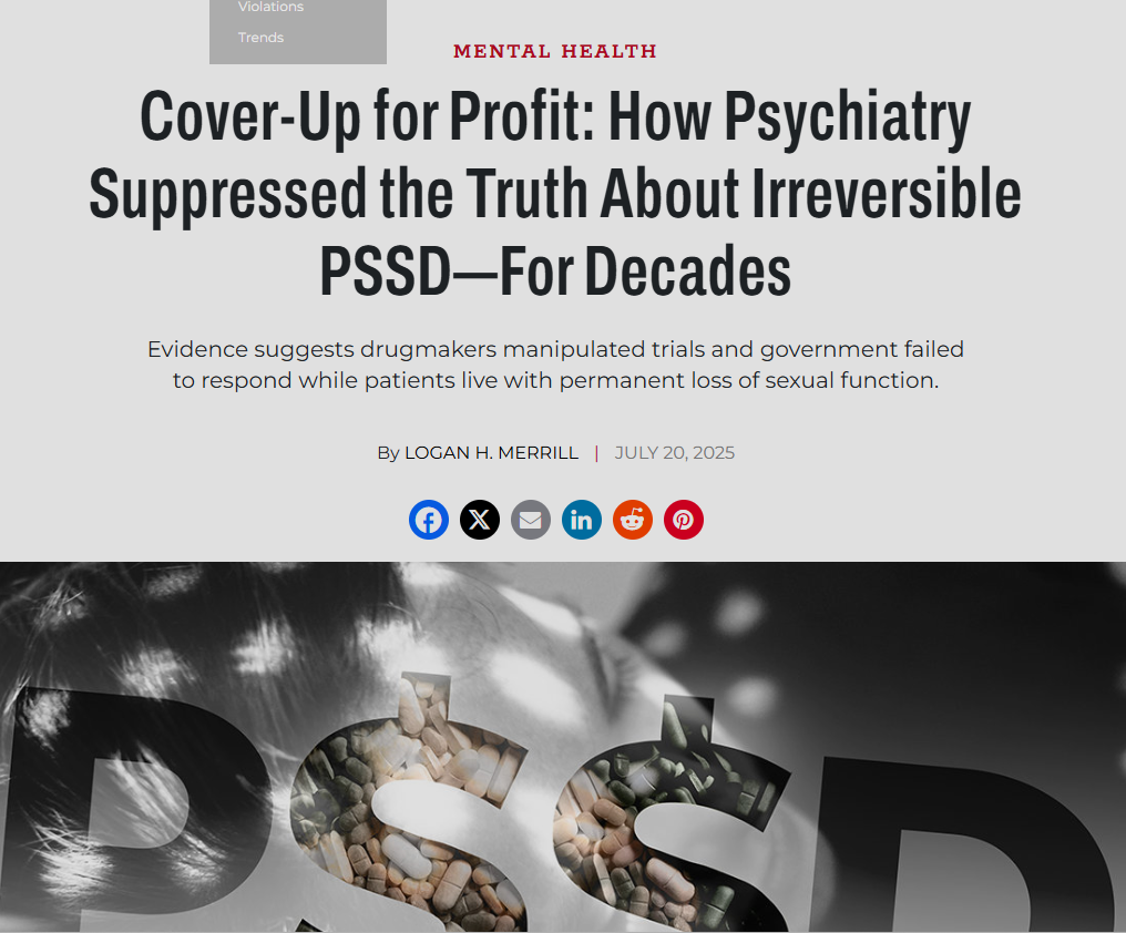 PSSD – covered up for decades, has been ignored for years but now the truth is coming out. Some are permanently damaged from taking an antidepressant.